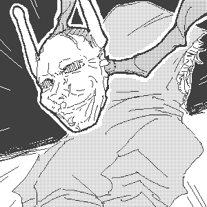 (136) 『ボク、怪人を見た!ハンニャーマン。 体を起こしながら声の方を見ると、 そこにはボス・ひょっとこと…がいたのサ。 「ひょーさ…………。 あの、後ろの人は誰です…?」 「手下Dダ」 「…何でそんなに包帯だらけ何です? やっぱり…4号さんが…?」 「ハンニャーマン!お前…覚えてないのか!」 「えっ…?何を…」 「これの原因は… 半分お前にあるんだぞ!」 「ええっ!?僕が…!?何かの間違いじゃ…」 「…自分の手を見てミロ」 ………手?』 | |